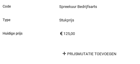 Nadat je deze instellingen hebt opgeslagen zie je dat de knop Prijsmutatie toevoegen is verschenen. Hiermee kun je op een later moment een mutatie toevoegen. Bijvoorbeeld wanneer per 1 januari van het nieuwe jaar de prijzen gaan wijzigen.