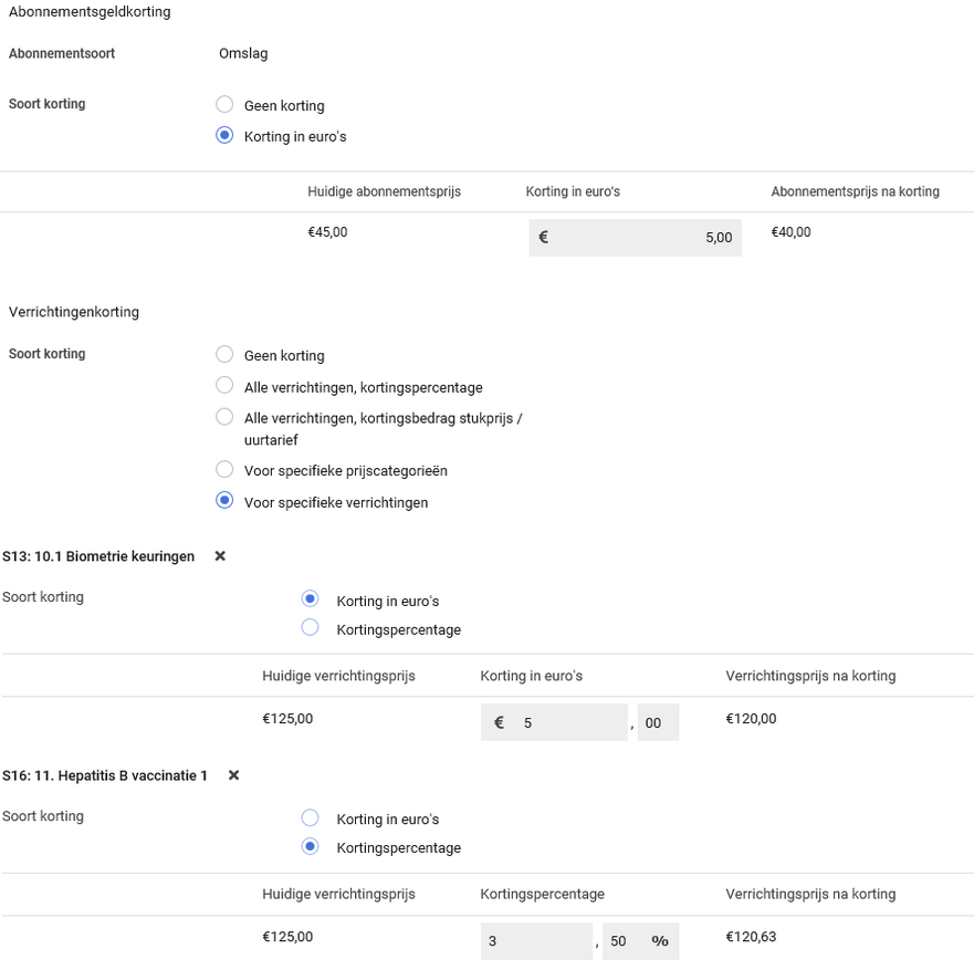 Je hebt hier verschillende opties om kortingen in te stellen. Stel de juiste kortingen in en kies voor Opslaan.