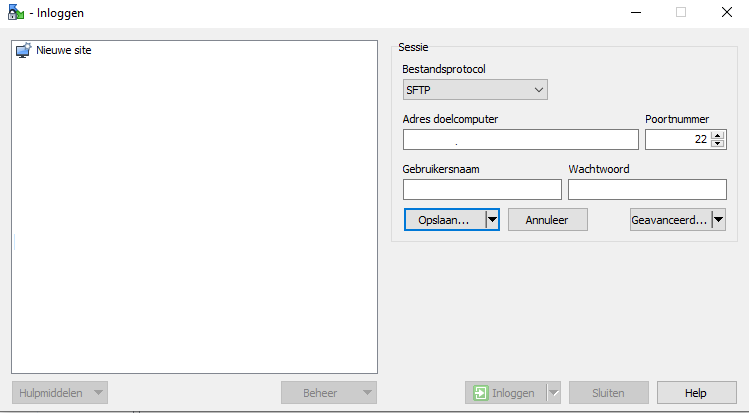 Stap 2: Open WinSCP en vul de volgende velden in: