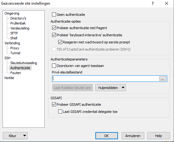 ksftp.xpertsuite.nlStap 4: Klik op Geavanceerd. Er opent onderstaand scherm, ga naar Authenticatie.
