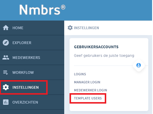 - 2) Aanmaken user template en gebruikersaccount in Nmbrs