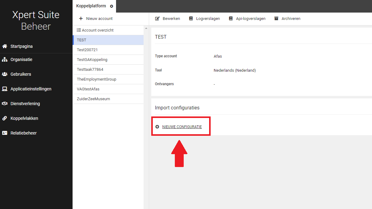 Wanneer je naar jouw aangemaakte account gaat kun je hier een nieuwe Import Configuratie toevoegen.