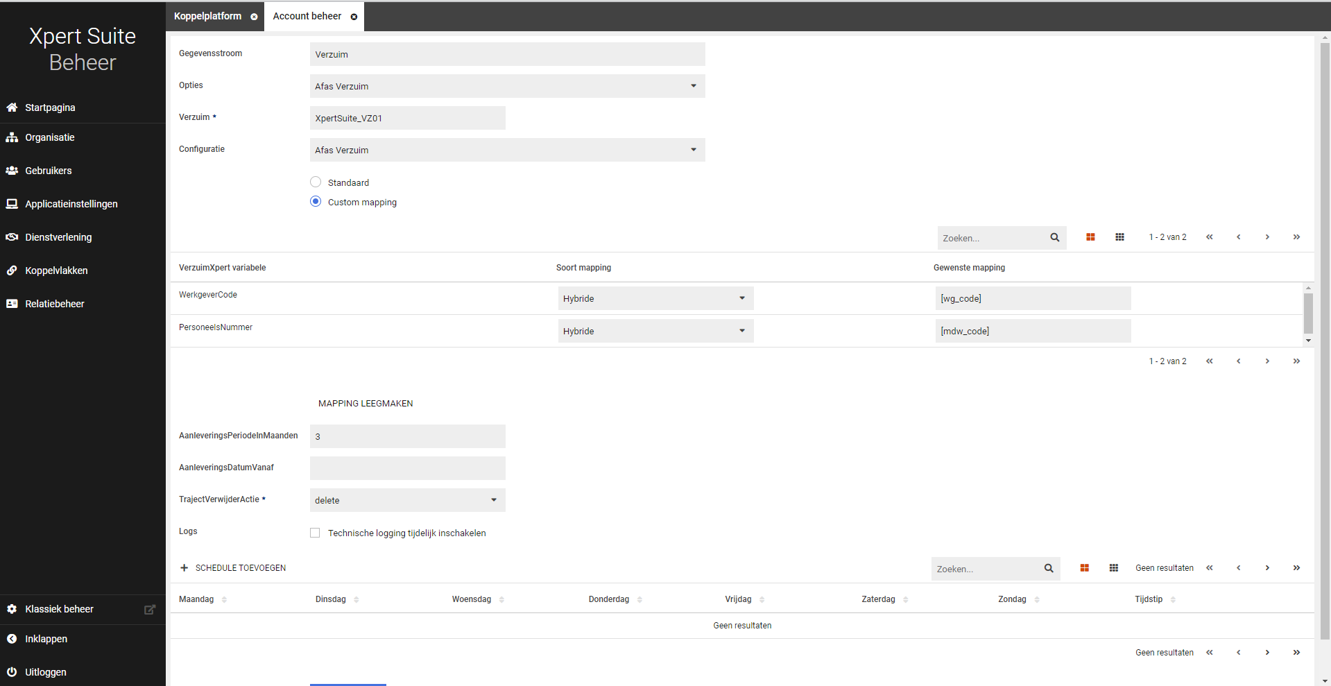 Je kunt de werkgeverCode en het Personeelsnummer aanpassen, wanneer hier in de XS bijvoorbeeld standaard iets voor of achter staat. Is dit exact dezelfde werkgeverCode en hetzelfde Personeelsnummer in AFAS en de XS, dan hoef je dit niet aan te passen.