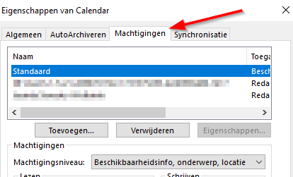 - 5. Een nieuw eigenschappen scherm is nu in beeld verschenen. Ga hierin naar het tabblad “Machtigingen”.