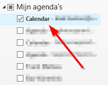 3. Klik met de rechtermuisknop op je eigen agenda (Agenda of Calender). Deze staat over het algemeen bovenaan in de lijst onder “Mijn agenda’s”. Achter Agenda of Calender staat over het algemeen ook je eigen mailadres.