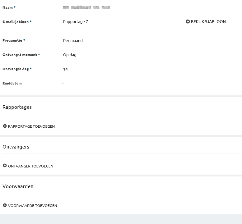 - De rapportage welke verstuurd moet worden en of dit in Xlsx of Pdf formaat verstuurd moet worden.
