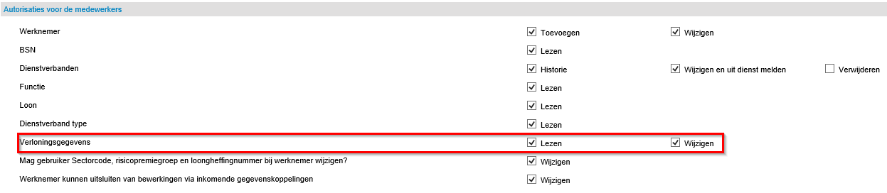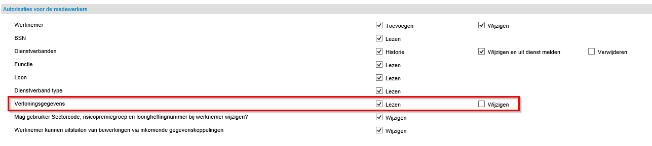 Voor de werknemergegevens is het van belang dat de gegevens correct worden ingevoerd omdat deze gegevens van invloed zijn op de uitkeringen van werknemers. Om deze reden zijn specifieke autorisaties voor het wijzigen/invoeren van verloningsgegevens van werknemers toegevoegd. Voor het opvoeren van daglonen is daarnaast ook nog benodigd dat de gebruikers specifiek voor de desbetreffende taak zijn geautoriseerd.