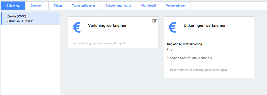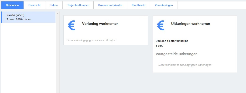 De gebruiker kan vervolgens het quick-view tabblad inzien en de werknemer verloningsgegevens en uitkeringen inzien.