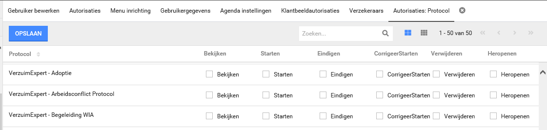 Autoriseer de gebruiker voor de protocolvariaties door tenminste één vinkje aan te zetten op het protocol zelf.