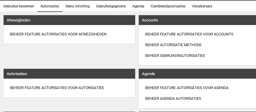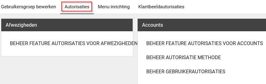 Indien de gebruiker ook een beheerder is, zal dit autorisatieonderdeel worden getoond.