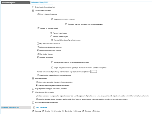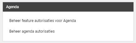 - Stap 3. Bij autorisaties heb je een blok welke ‘Agenda’ heet. Binnen dit blok heb je twee keuzemogelijkheden waarvoor de keuzes hieronder besproken zullen worden.