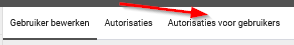 - Stap 2. Ga naar de gewenste gebruiker waar agenda autorisaties voor ingesteld moeten worden en kies bij de gebruiker voor autorisaties.