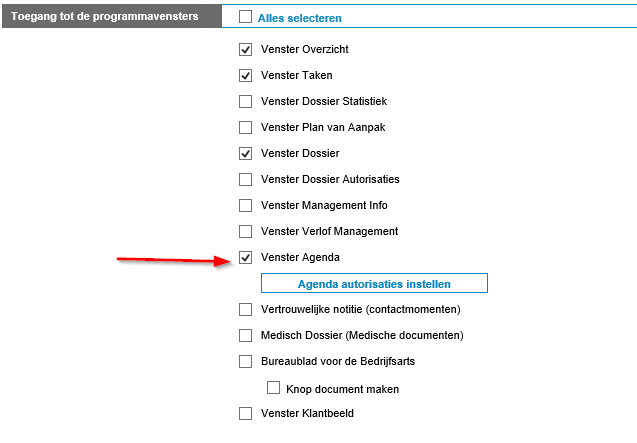 - Binnen deze keuzemogelijkheid zijn een aantal autorisaties instelbaar. Dit zijn onderstaande