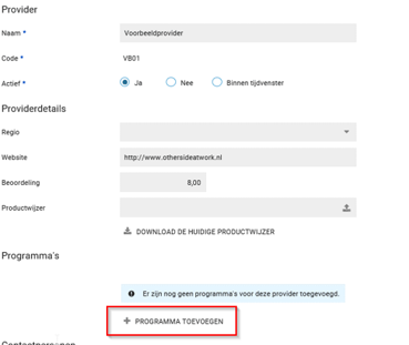 Nadat Providers zijn opgevoerd, kunnen daaronder programma’s worden toegevoegd.