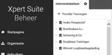 Binnen de Xpert Suite kan een eigen providerboog (mits afname van Module: Providerboog) worden ingericht waarin de betrokken interventionisten en hun dienstverlening kunnen worden vastgelegd. De geregistreerde providers en hun dienstverlening kunnen vervolgens binnen een interventietraject geselecteerd worden en de eigenschappen van de geselecteerde dienstverlening worden gebruikt bij een kosten-baten afweging van de inzet van de betreffende interventie. Overstijgend aan de losse interventietrajecten kunnen geconsolideerde managementrapportages worden samengesteld over de totale providerboog.