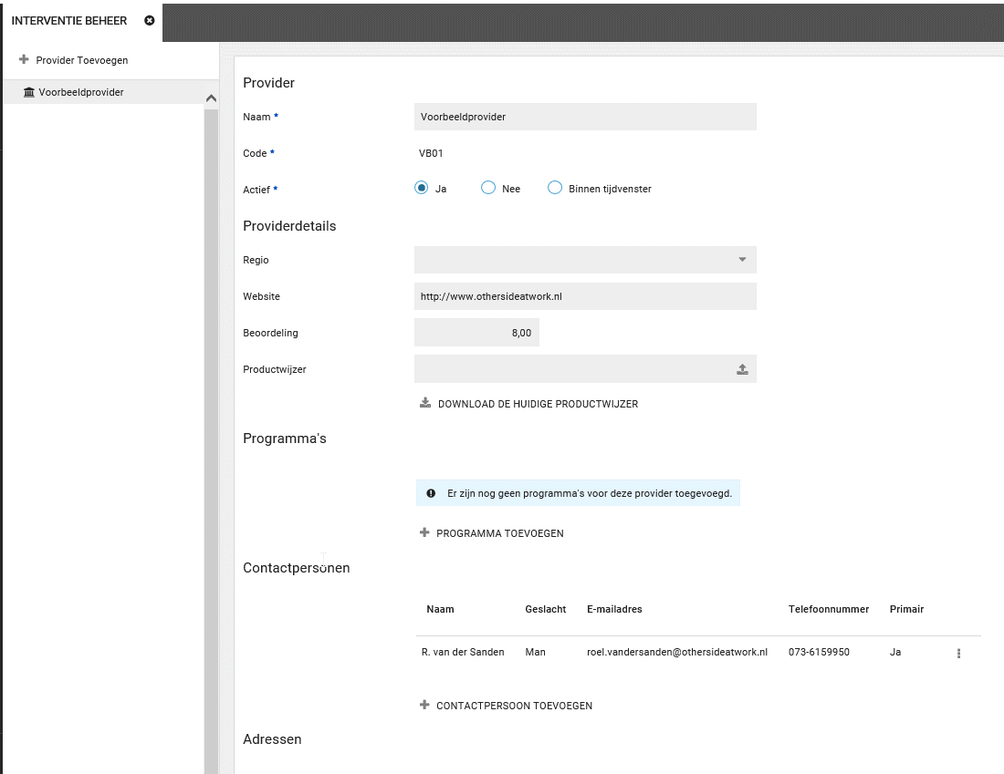 Stap 1. In het nieuwe scherm zie je op de tab Interventiebeheer de providers die al zijn ingevoerd.