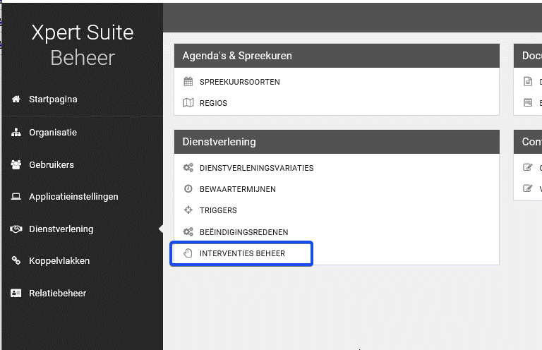 In deze instructie wordt uitgelegd hoe de Providerboog / Interventiemodule ingericht/aangepast wordt in XS waarna gebruikers interventietrajecten kunnen beheren.