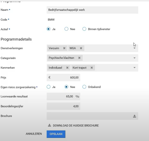 Uit deze bibliotheek van providers en programma’s kan vervolgens binnen een traject een keuze gemaakt worden. De professional die bepaalt welke interventie ingezet wordt kan alle ingestelde gegevens binnen dit beheer gebruiken.