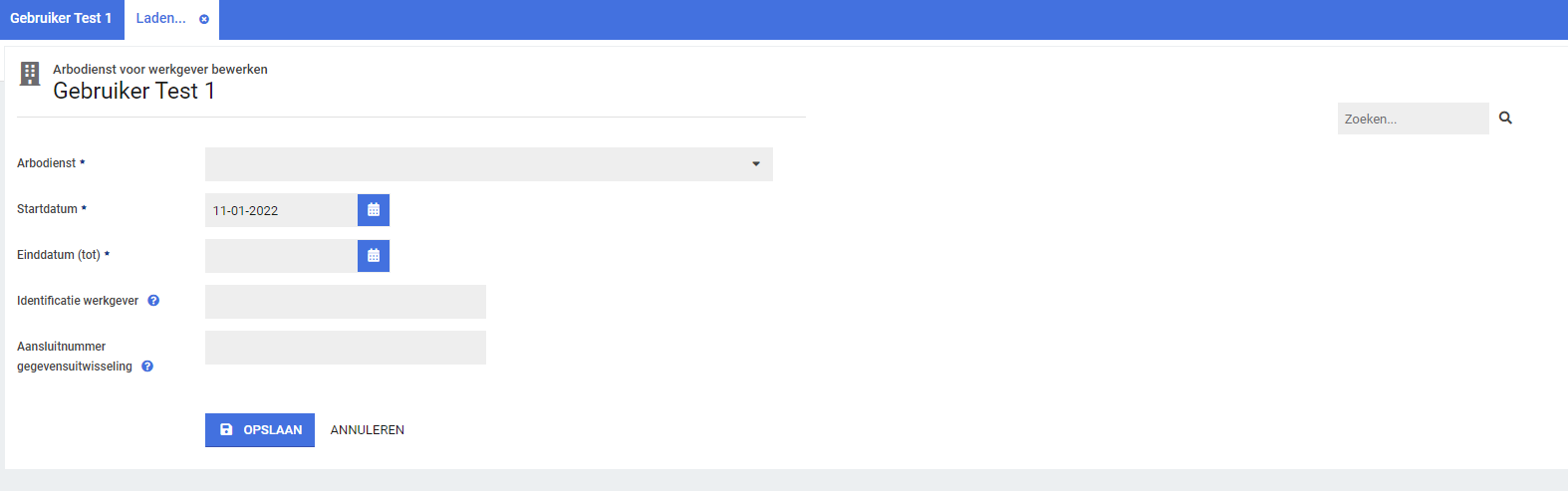 In de dropdown ‘Arbodienst’ staan alle selecteerbare arbodiensten opgenomen.