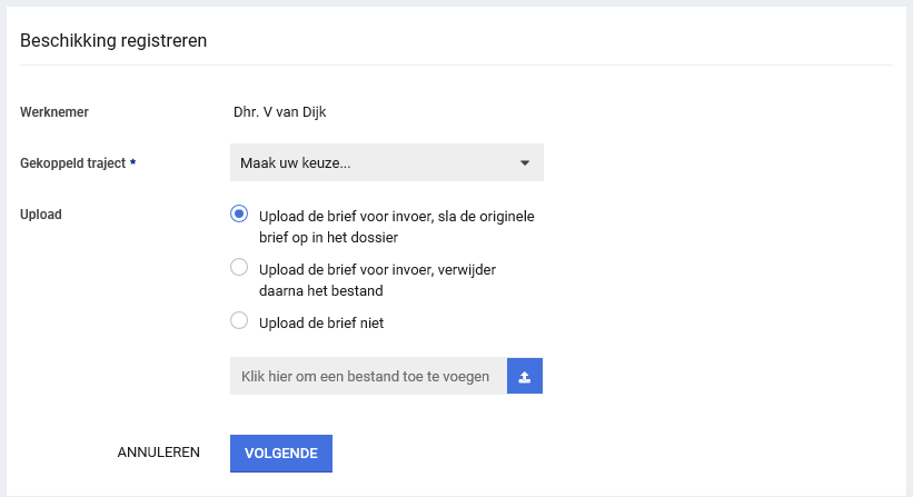 Stap 2: Koppel een traject en upload eventueel de brief.