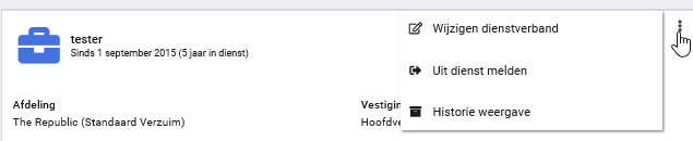 Daarnaast kun je (indien je de autorisatie hebt) dienstverbanden wijzigen, uit dienst melden en de historie weergave bekijken.