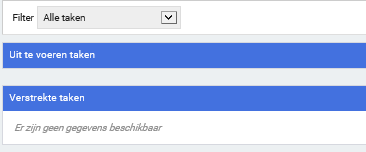 Alle taken die uitgevoerd moeten worden staan onder Uit te voeren taken. Ook kun je, als je een taak hebt toegewezen aan een andere gebruiker, die terugvinden onder het kopje Verstrekte taken.