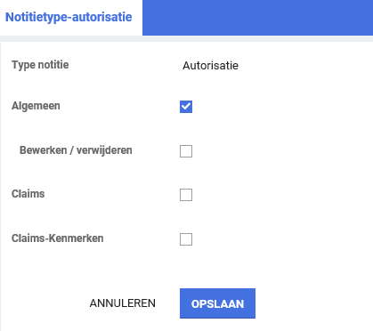 Je kunt voor ieder gekozen notitietype een leesautorisatie toevoegen. Als je dat vinkje hebt aanstaan kun je aangeven of je de notities ook mag bewerken
