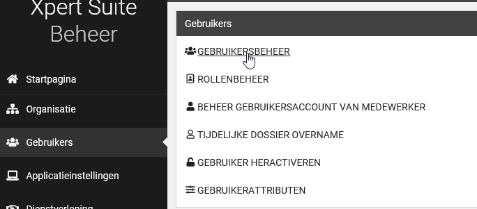 Ga in het nieuwe Beheer scherm via de tab Gebruikers naar het Gebruikersbeheer.
