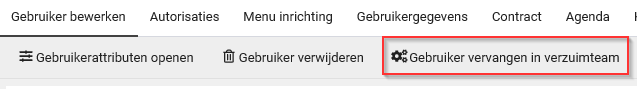 Klik vervolgens op het account van de gebruiker die vervangen gaat worden. Klik bovenin op Gebruiker vervangen in verzuimteam.