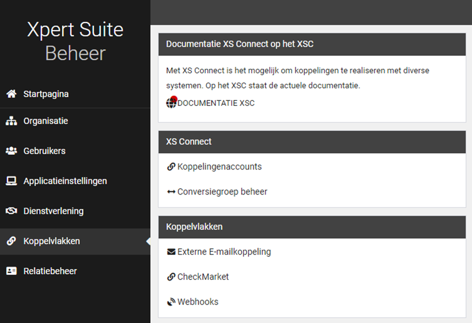 XS Connect is een integratieplatform binnen de Xpert Suite. Dit platform is voor superbeheerders bereikbaar via de beheerpagina van XS Connect. Via dit platform kunnen gebruikers zelf een (sftp) connectie opzetten met de Xpert Suite, en via de opgezette infrastructuur de gewenste data uitwisselen. XS Connect kan worden gebruikt voor eenmalige en voor structurele bestandsuitwisselingen. Het gebruik van datastreams verloopt ook via het XS Connect platform. Via deze beheer pagina kunnen de gewenste streams geconfigureerd worden.