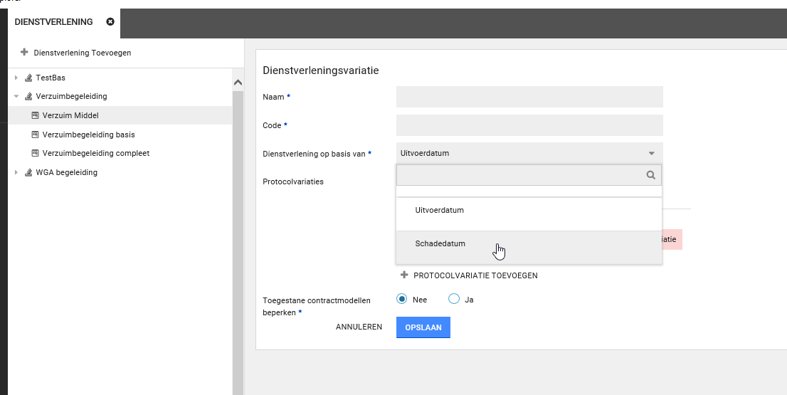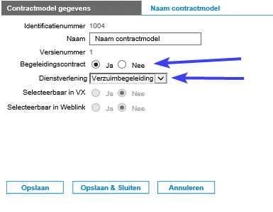 - 4. Te selecteren contractmodellen instelbaar per dienstverleningsvariatie