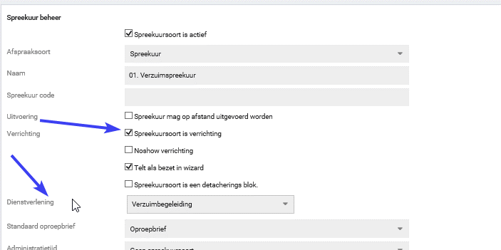 Bij contractmodellen kan bij het maken van een nieuw contractmodel worden aangegeven bij welke dienstverleningssoort het hoort. Vervolgens zijn de ‘te plaatsen verrichtingen’ gefilterd op alleen de taken en spreekuursoorten die van dezelfde dienstverleningssoort zijn.
