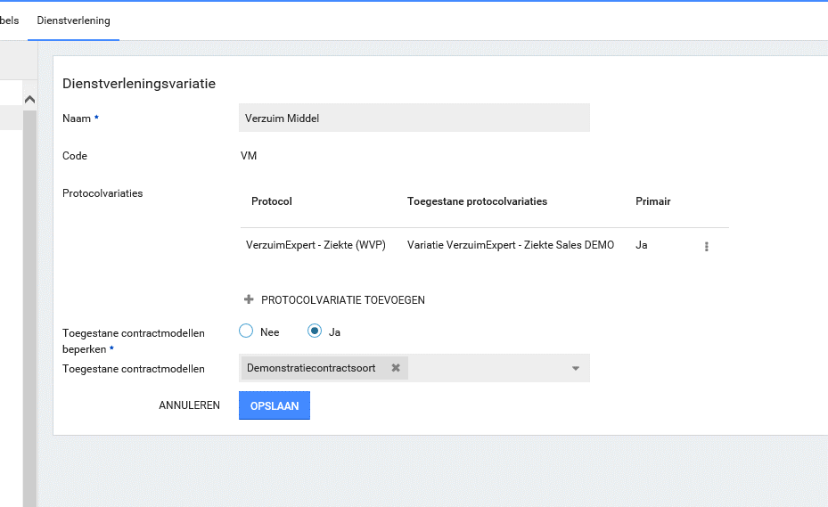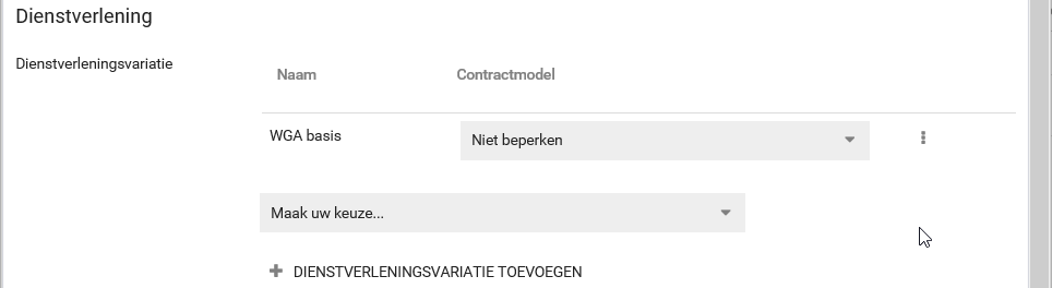 Om gebruikers beter te sturen in de gekozen ‘contractmodellen’ is het mogelijk om bij een dienstverleningsvariatie in te stellen dat er maar gekozen mag worden uit een aantal contractmodellen.