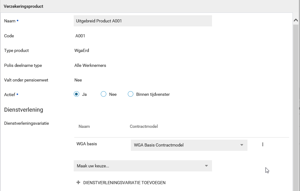 Het is mogelijk om bij verzekeringsproducten een specifiek contractmodel in te stellen.