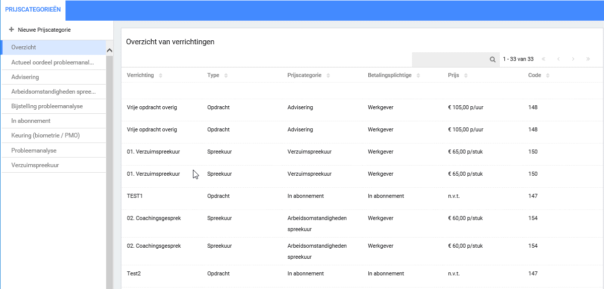 Zie hieronder het PrijsCategorie-Beheerscherm