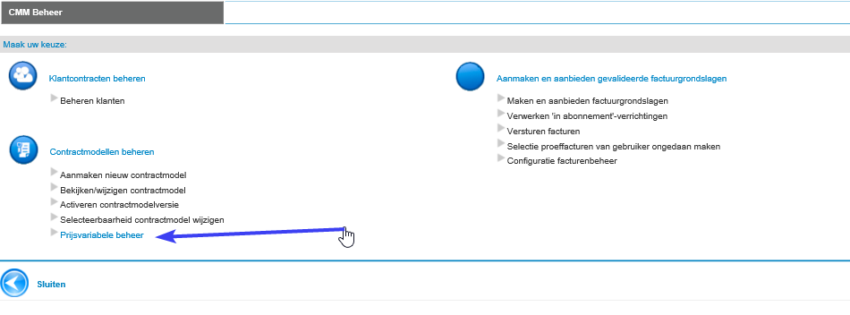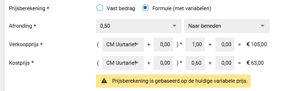 De prijsvariabelen zelf stel je in het hoofdmenu van CMM-beheer in. Zie voor meer informatie hierover het artikel: Prijsvariabele beheer