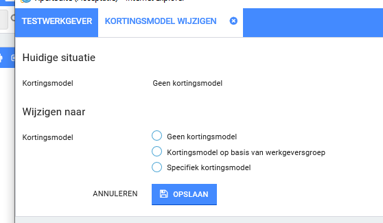 Wanneer je een werkgever in een groep plaatst, zal voortaan actief gevraagd worden of je het kortingsmodel ook nog wilt aanpassen.