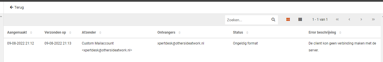 Mochten de e-mails niet ontvangen worden, dan kan bij de logging bekeken worden wat de bijbehorende foutmelding is. Dit wordt verder hieronder beschreven.