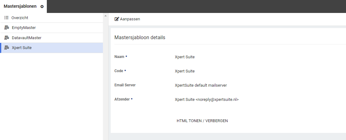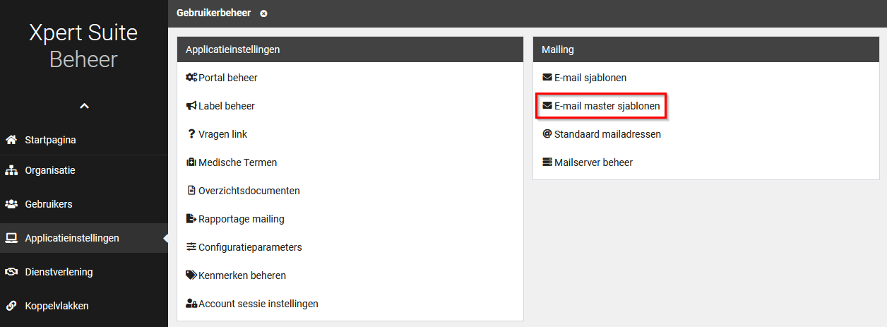 Navigeer naar Beheer > Applicatieinstellingen > E-mail master sjablonen