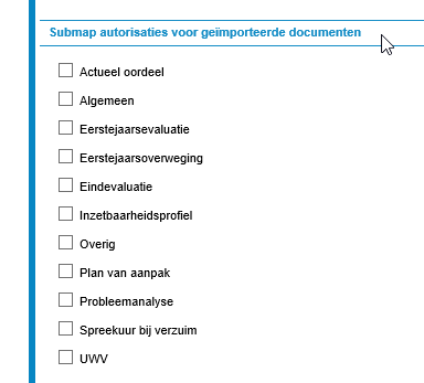 Het autoriseren van gebruikers voor submappen gebeurt in klassiek beheer.