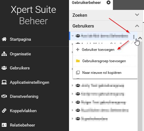 Via de drie puntjes van een bestaande gebruikersgroep kun je de Gebruiker toevoegen optie selecteren.