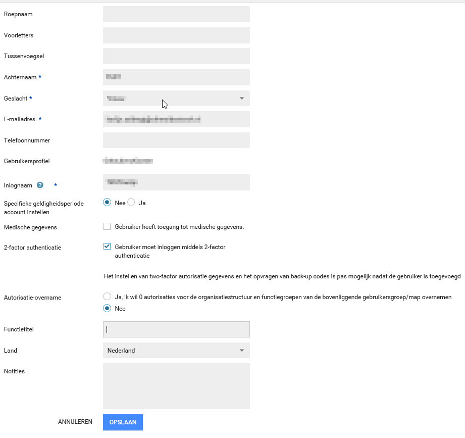 De functietitel hoef je enkel in te vullen wanneer deze afwijkt van de naam van de gebruikersgroep. Indien gewenst kun je notities toevoegen voor deze gebruiker.
