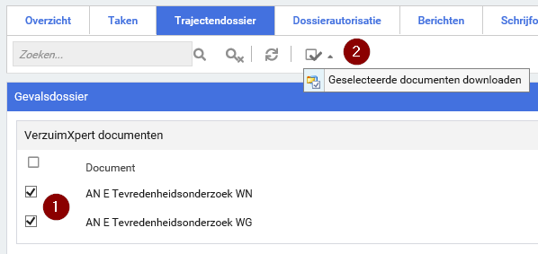 Hoe kan ik meerdere documenten uit het trajectendossier downloaden?