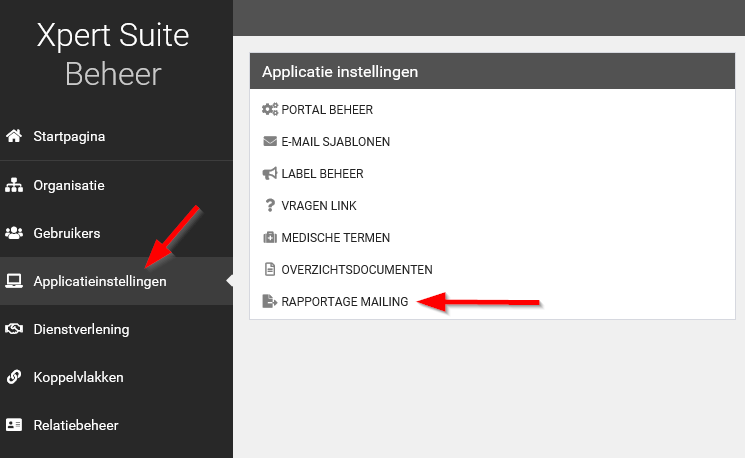 Stap 1: Open het Beheer en ga naar Applicatieinstellingen – Rapportage mailing.