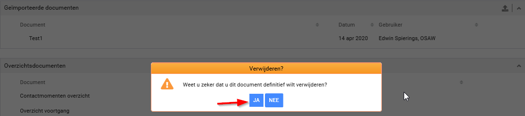 Stap 2. Bevestig de verwijdering met Ja. Het geüpload document wordt verwijderd.