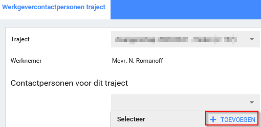 Stap 10. Indien er trajecten lopen, kan via onderstaande knop een contactpersoon worden toegevoegd.