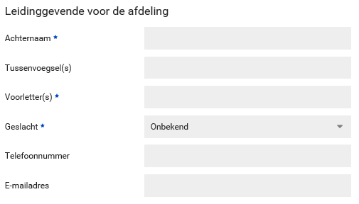 Stap 7: Vul rechts de gegevens voor de leidinggevende van de afdeling in en klik op Opslaan.