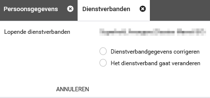 Stap 7: Je ziet de lopende dienstverbanden van de werknemer. Selecteer de optie Dienstverbandgegevens corrigeren en klik op Verder.