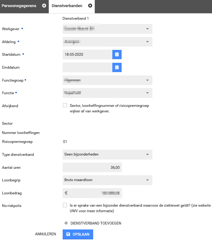 Bij elke werknemer kunnen één of meerdere dienstverbanden opgevoerd worden, met daarin de gegevens van het dienstverband.