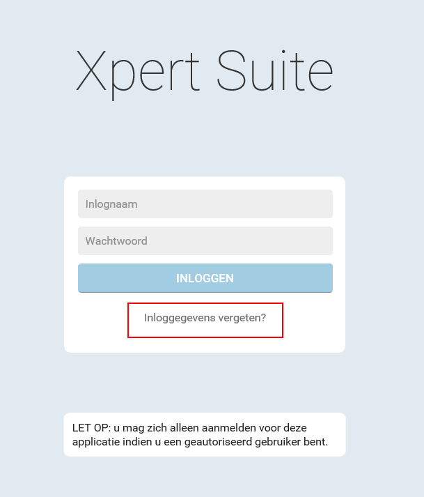 Voor meer info over inloggen bij Xpert Suite, klik hier.